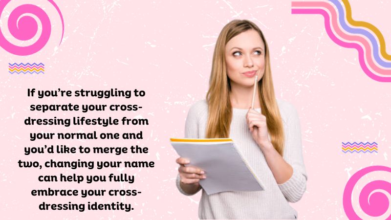 Identity Expression: If you’re struggling to separate your cross-dressing lifestyle from your normal one and you’d like to merge the two, changing your name can help you fully embrace your cross-dressing identity.