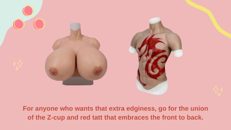 Crossdressers, drag queens, and mastectomy patients who plan to wear the Z-cup bra size and muscle suit combo should opt for silk or stretchy fabrics to let air flow.