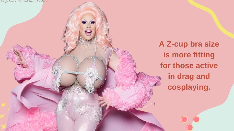 A Z-cup bra size is more fitting for those active in drag and cosplaying.