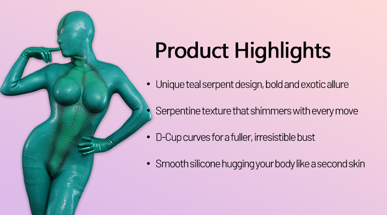 • Serpentine Texture D-Cup Silicone Bodysuit – Teal Edition